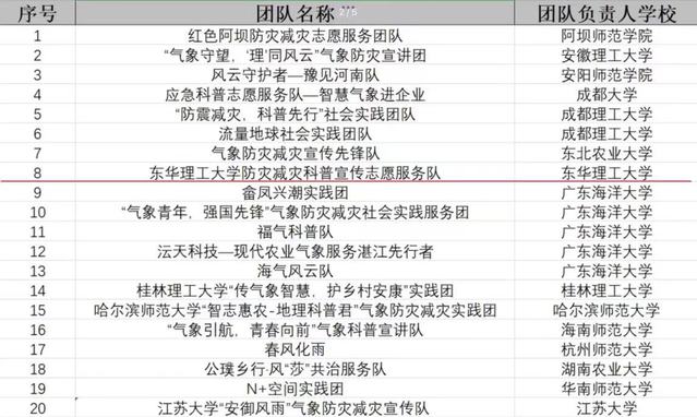 7月9日,2024年气象防灾减灾宣传志愿者中国行“三下乡”专项活动入选名单公示,浙江大学、南京大学、雷速网页版等45所高校的144支团队入选,江西省仅有2支团队入选。
