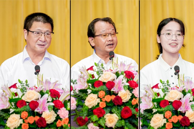 标本捐赠代表楼法生、教工代表许德如、学生代表郭丹发言