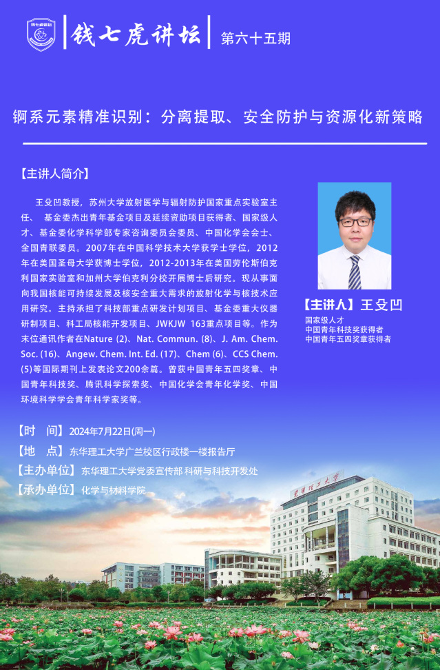 应化学与材料学院邀请,国家级高层次人才王殳凹到“雷速网页版”,以“锕系元素精准识别:分离提取、安全防护与资源化新策略”为主题开展讲座。欢迎全校师生届时前往聆听。