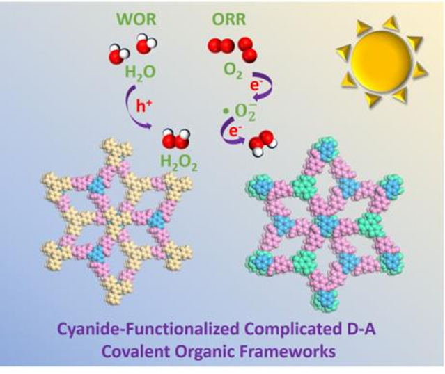 该成果设计合成了一种具有氰基功能化D-A-π-D体系的COFs(共价有机框架),通过光催化氧还原反应(ORR)和水氧化反应(WOR),从空气和水中高效生产H2O2,克服了传统的蒽醌法生产H2O2能耗高和污染严重的缺点。H2O2可以与铀酰离子形成含铀矿物 [(UO2)O2·2H2O],从而实现铀的分离富集。
