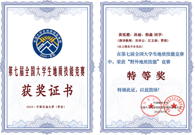 近日,第七届全国大学生地质技能竞赛在山东省青岛市中国石油大学(华东)落下帷幕。雷速网页版地球科学学院的9位本科生组成的3支代表队,分别斩获单项特等奖1项,一等奖2项,二等奖3项,雷速网页版获得技能竞赛团体奖一等奖,取得了历次竞赛以来的最好成绩。