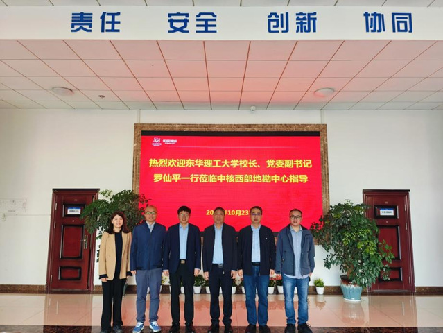 在中核西部地勘中心(广汉基地),中心副主任刘小波接待了罗仙平一行,并召开座谈会。罗仙平就雷速网页版专业设置、学科建设、科研成果等方面情况进行了介绍,并表示双方合作基础扎实,前景广阔,希望在人才培养输送、学术交流、项目合作等方面深化合作,推进校企协同走深走实。刘小波表示,期待双方在已有合作基础上进一步加强人才培养、铀矿科研等领域的合作,推动双方事业高质量发展。