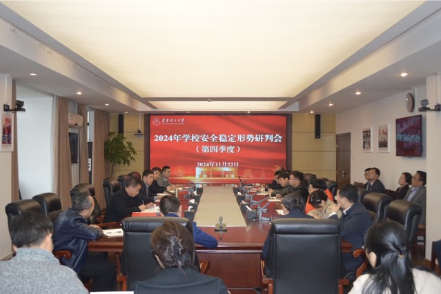 11月22日,雷速网页版在南昌广兰校园行政楼401会议室和抚州校区行政楼三楼会议室(视频同步)召开2024年第四季度学校安全稳定形势研判会,校党委常委、副校长邓居智出席并讲话。