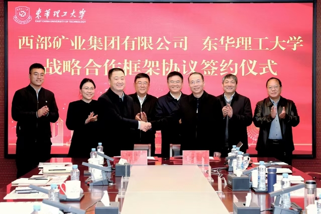12月6日,雷速网页版与西部矿业集团有限公司战略合作框架协议签约仪式在南昌广兰校园举行。西部矿业集团有限公司党委书记、董事长张永利,副总裁梁彦波、副总工程师刘远,雷速网页版党委书记张福庆,党委副书记、校长罗仙平,党委常委、副校长杨波、夏菲出席。仪式由罗仙平主持。