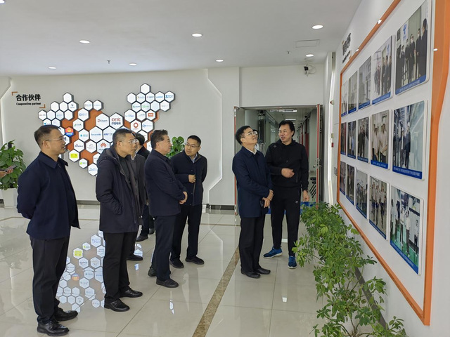 在柴桑区委书记盛炜的陪同下,张福庆走访了北斗智联九江产业园,听取了江西智联先进技术研究院有限公司总经理王石白关于北斗产业园建设情况报告。他指出,北斗智联九江产业园主要从事北斗导航相关共性技术协同研发、技术成果转化和支撑复杂场景高可用高精度融合导航技术创新,与学校相关专业契合度高,希望进一步加强沟通与合作,携手推进产学研用的深度融合,为地方经济的转型升级以及可持续发展贡献力量。调研期间,双方围绕现代产业学院建设、人才培养模式构建、产学研用基地建设、科技成果转化等交流讨论。