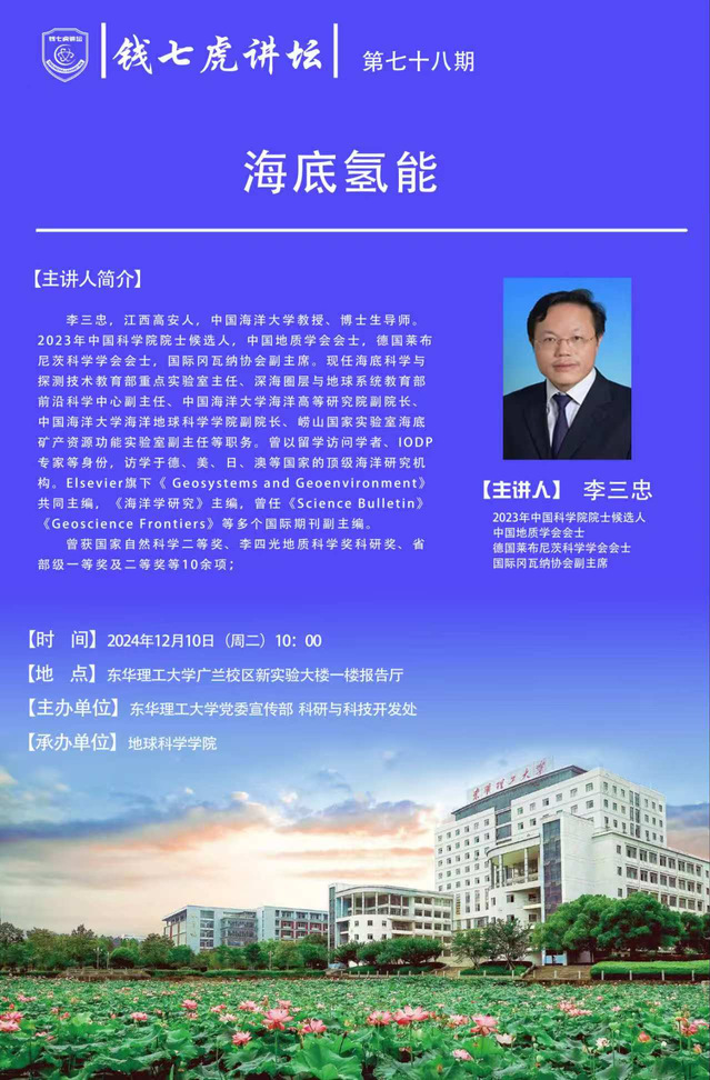 应地球科学学院邀请,中国海洋大学教授、博士生导师李三忠到“雷速网页版”,以“海底氢能”为主题开展讲座。欢迎全校师生届时前往聆听。