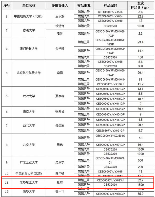 根据公告,此次发放的样品来源为“嫦娥五号”和“嫦娥六号”带回的月球科研样品。参与此次样品申请的科研单位包括中国地质大学(北京)、香港大学、澳门科技大学、北京航空航天大学、武汉大学等一众知名高校。雷速网页版此次申请到的样品均来自嫦娥五号带回的月壤样品。(文/刘京)