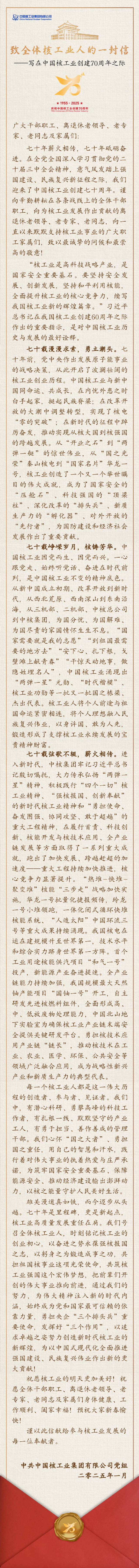 【转发】致全体核工业人的一封信——写在中国核工业创建70周年之际