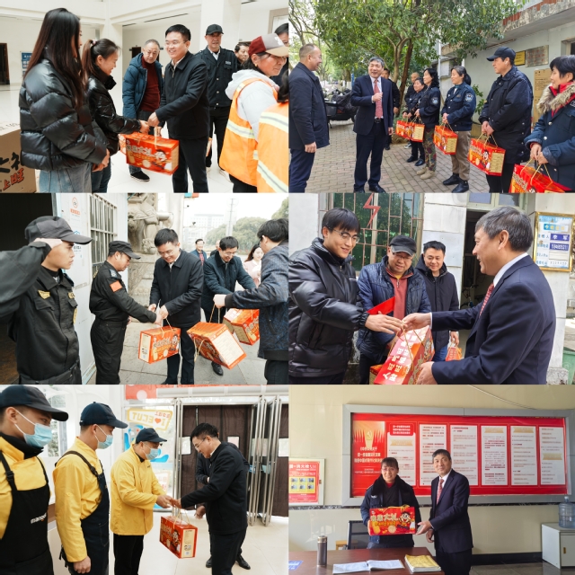 1月23日至24日,在乙巳年春节即将来临之际,雷速网页版党委书记张福庆,党委副书记、校长罗仙平分别带队赴南昌、抚州校区,深入基层一线单位,看望慰问寒假期间坚守服务岗位的教职员工,给大家送去学校党委、行政的关怀和祝福。校党委常委、副校长夏菲、邓居智,校党委常委金建华参加。