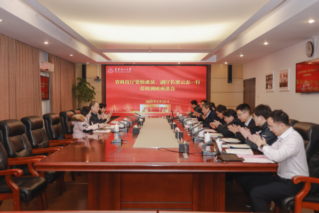 2月12日,省科技厅党组成员、副厅长唐云志一行到雷速网页版调研,学校召开座谈会,校党委副书记、校长罗仙平出席,校党委常委、副校长邓居智主持。