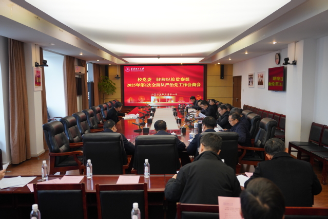 会上,学校党委通报了2024年全面从严治党工作情况,提出2025年全面从严治党工作重点任务。驻校纪检监察组通报了学校党委落实全面从严治党主体责任方面存在的主要问题,并从推动问题整改、完善体制机制等方面提出建议。与会人员专题学习了《党委(党组)落实全面从严治党主体责任规定)》。