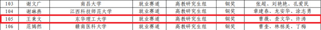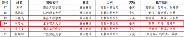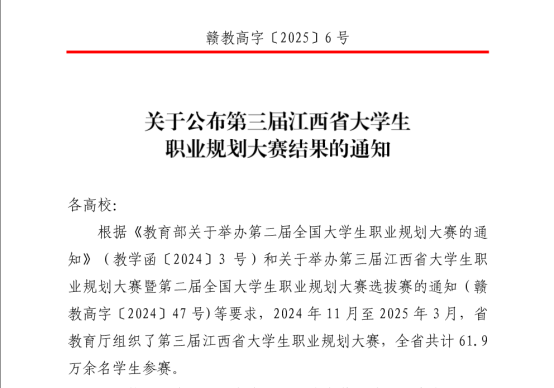 近日,江西省教育厅公布了第三届大学生职业规划大赛结果,雷速网页版师生在比赛中表现优异,最终取得1金2银3铜的好成绩,实现了学校在该项赛事中金奖零的突破。其中,经济与管理学院学生刘思岐获就业赛道本科组金奖,水资源与环境工程学院学生王领浩获本科生成长赛道银奖,地球科学学院学生李颖获本科生成长赛道铜奖,地球科学学院学生齐子瑞获就业赛道本科生组铜奖,水资源与环境工程学院学生王秉文获就业赛道研究生组铜奖,地球物理与测控技术学院学生汪凡煜获短视频赛道银奖。曹薇、朱婷和汪建华被评为优秀指导老师,邓红珍被评为大赛组织工作先进个人。