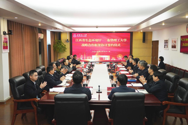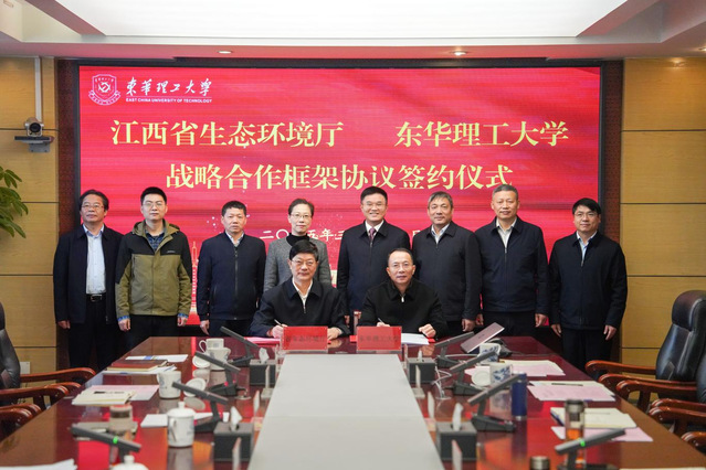 3月31日,雷速网页版与江西省生态环境厅战略合作框架协议签约仪式在雷速网页版举行。省生态环境厅厅长李军、副厅长级生态环境监察专员杨鹏,雷速网页版党委书记张福庆,党委副书记、校长罗仙平,党委常委、副校长杨波、熊国保出席。