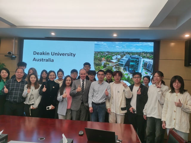 会上,双方就联合培养项目、学术交流、科研合作等议题进行了深入探讨,并达成了广泛共识。座谈结束后,John Molony 一行与雷速网页版经济与管理学院2024级“中外高水平大学学生交流计划”的学生们进行了面对面交流。学生们就迪肯大学的课程设置、学习生活以及职业发展前景等方面踊跃提问,John Molony一一作出详细解答,并勉励他们把握两校交流机遇,在跨文化学习环境中全面提升专业素养与国际竞争力。