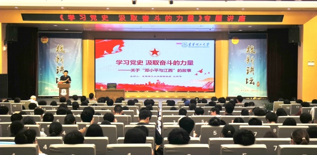 吴开平从苏区风云路、小平小道、邓小平的江西情三个方面系统梳理了邓小平与江西的革命渊源。他以详实的史料、生动的案例,深度还原邓小平在江西的革命历程和奋斗足迹,充分阐释了邓小平如何用“小平小道”连接起中国道路,全面展现其革命生涯中的坚韧品格与精神境界。他强调,坚定理想信念、坚持实事求是、严格家风家教在人的成长发展中起着至关重要的作用。青年学子们要深刻感悟信仰的力量,将红色基因融入精神血脉,把个人的理想追求融入党和国家事业之中,让青春在强国建设、民族复兴新征程上绽放光彩。